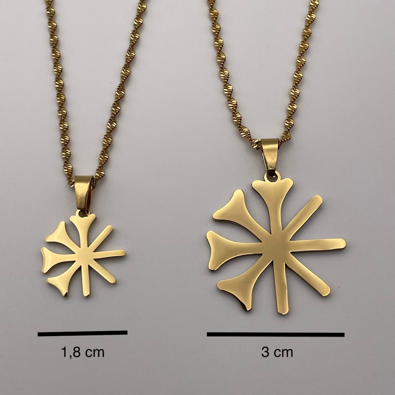 - Größen: Wähle zwischen einem auffälligen Pendant von 3 cm und einem dezenten Pendant von 1.8 cm.